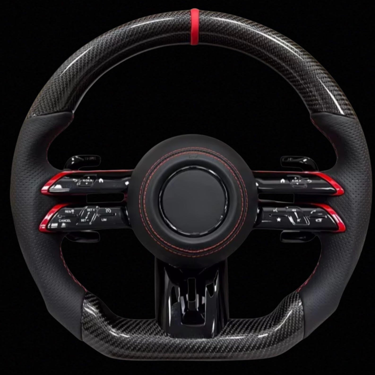 • Performance Geometry – Flat-bottom silhouette with ergonomic hand grips, designed to enhance driver control while amplifying presence.
